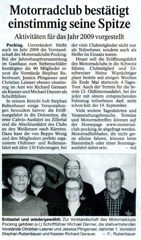 Über die Jahreshauptversammlung, Bericht vom 11.03.2009: