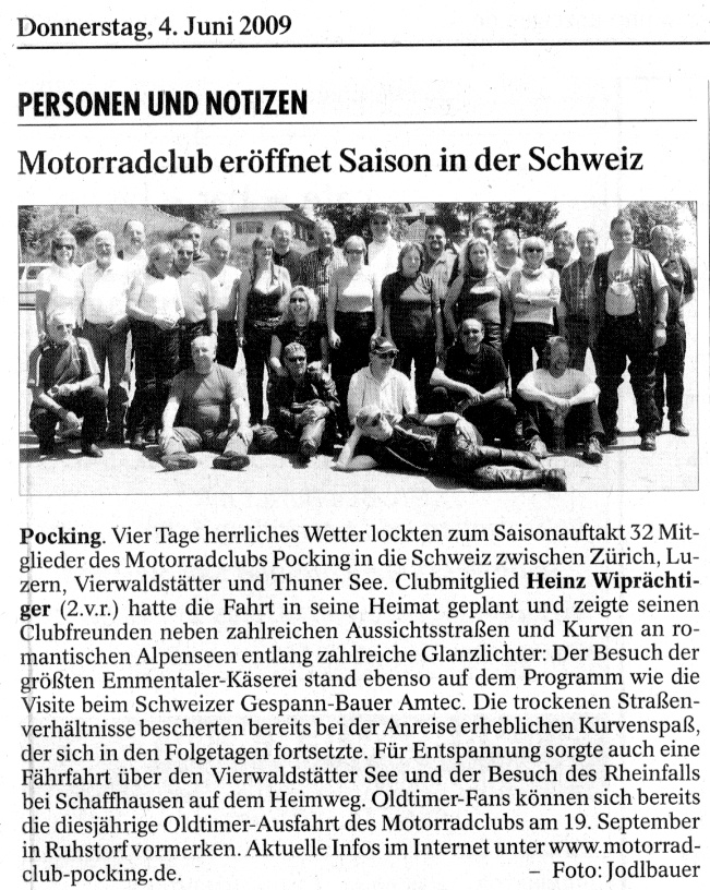 Über die Schweizfahrt vom 21.-24. Mai 2009: