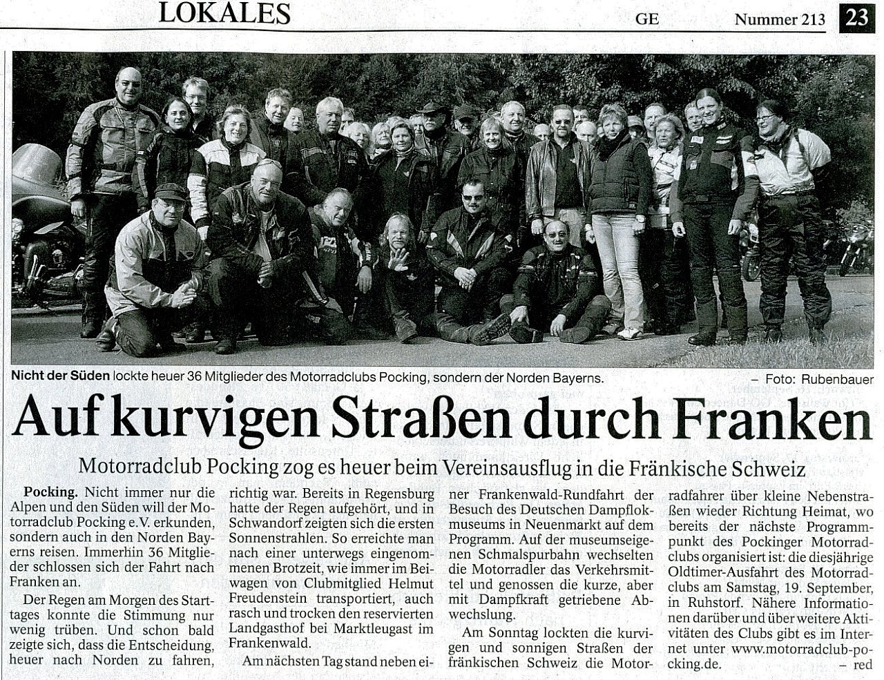 Über die Ausfahrt nach Franken (Marktleugast), Bericht vom 15.09.2009: