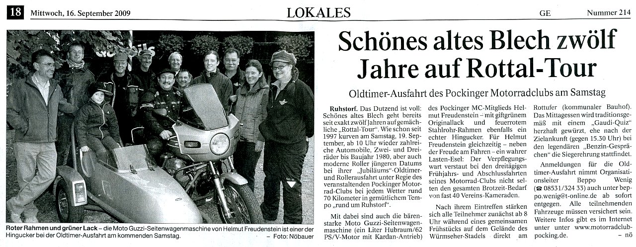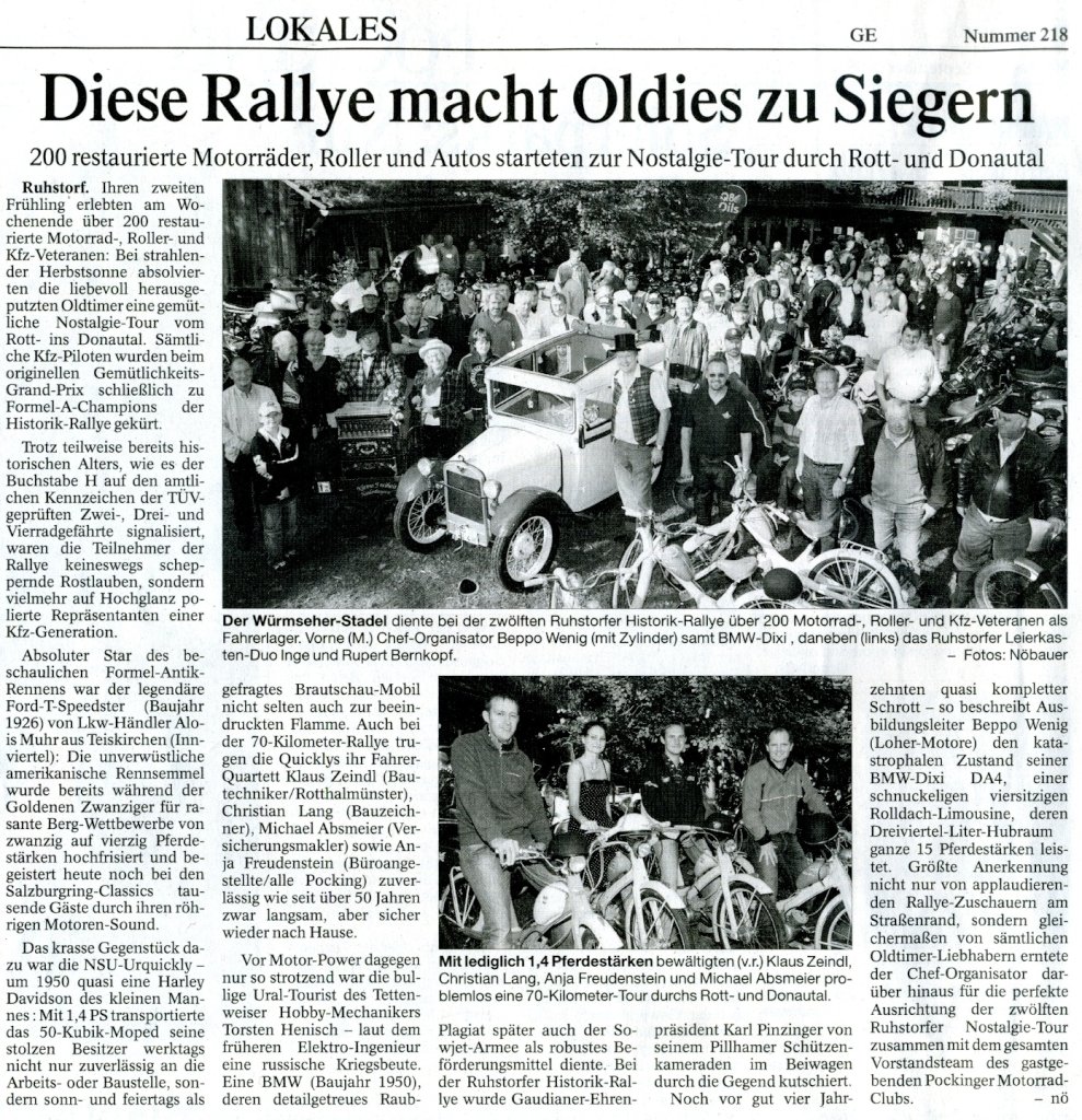 Vorbericht zur Oldtimerausfahrt, erschienen am 16. September 2009