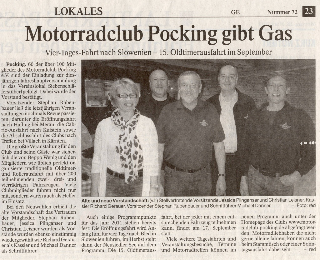 Über die Jahreshauptversammlung, Bericht vom 28.03.2011