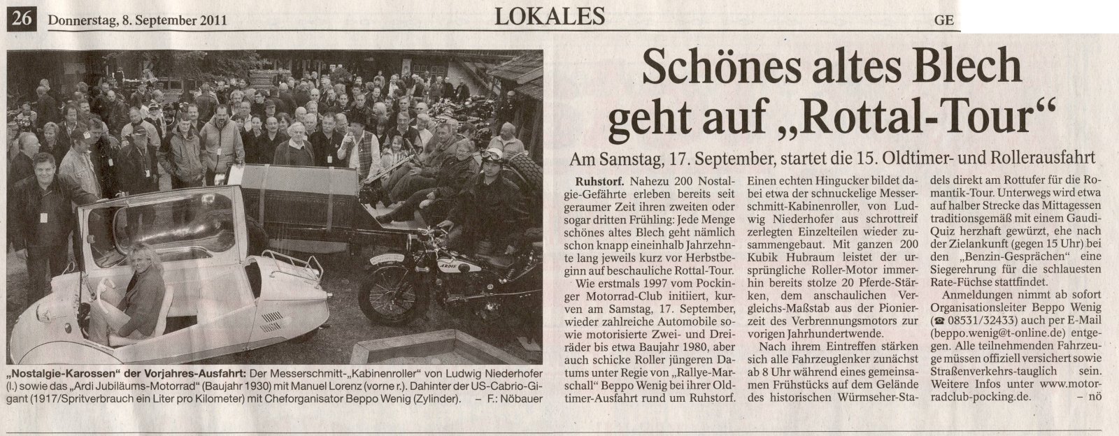 Über die MCP Roller- und Oldtimerausfahrt, Vorbericht vom 08.09.2011