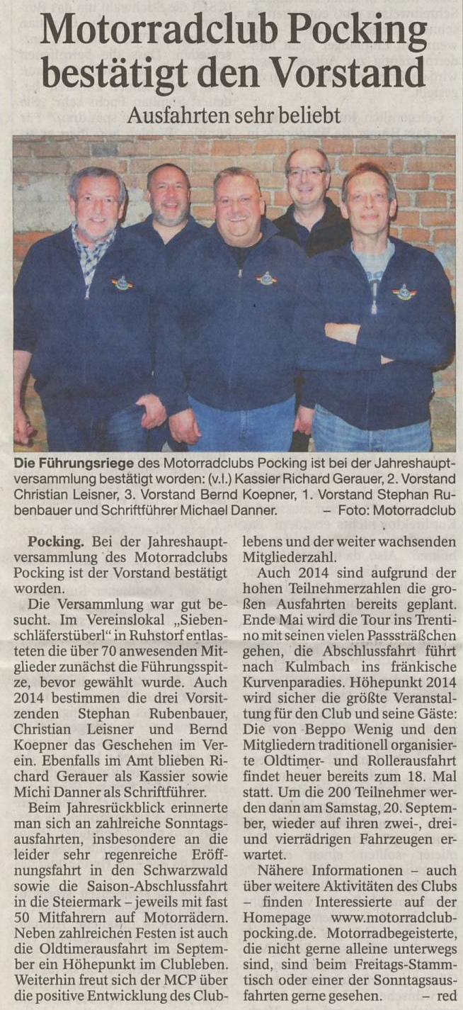 Über die Jahreshauptversammlung, Bericht vom 01.04.2014