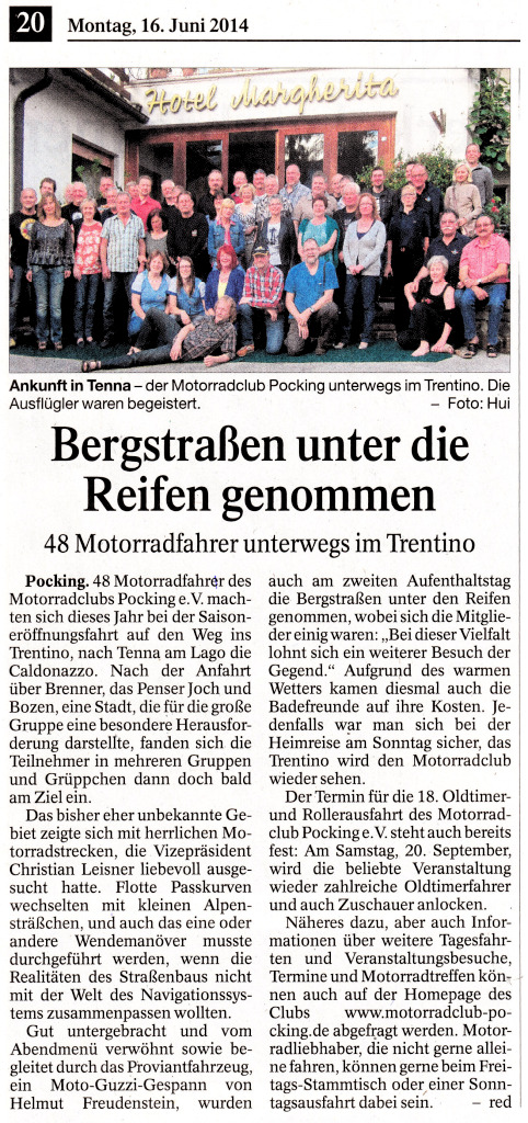 Über die Saisoneröffnungsfahrt 2014 nach Tenna (Trentino):
