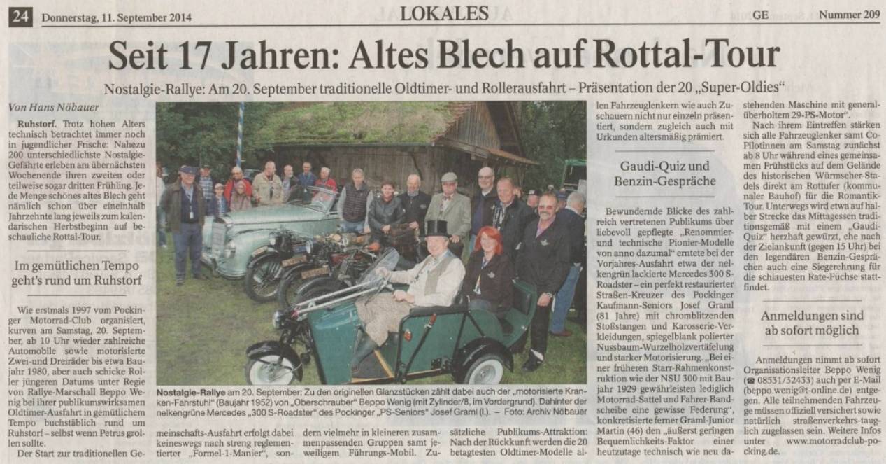 Über die Oldtimerausfahrt 2014 - Vorbericht vom 11.09.2014: