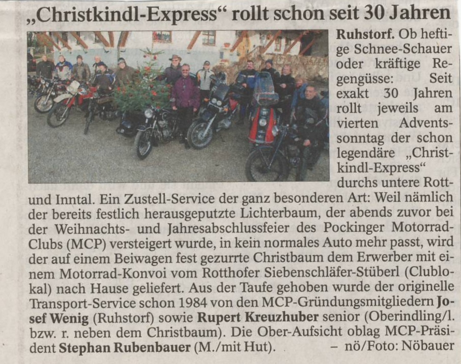 Über die traditionelle Christbaumzustellung seit 30 Jahren - Bericht vom 23.12.2014: