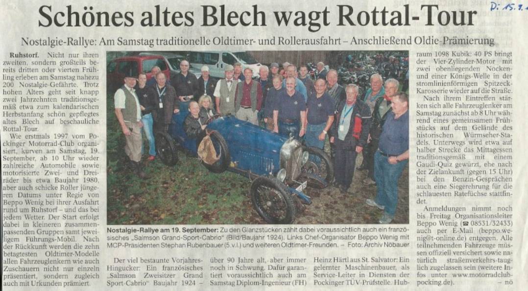 Über die Oldtimerausfahrt am 19.09.2015, Vorbericht vom 15.09.2015