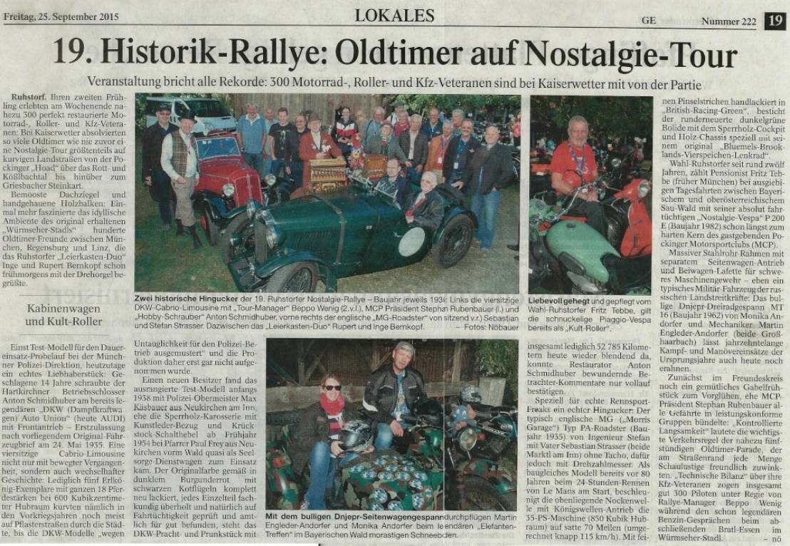Über die Oldtimerausfahrt vom 19.09.2015, Hauptbericht am 25.09.2015