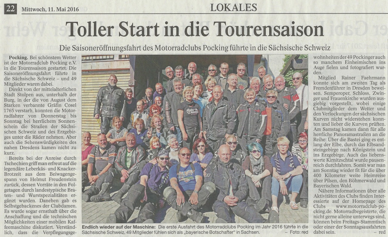 Über die Eröffnungsfahrt nach Stolpen in Sachsen, Bericht vom 11.05.2016