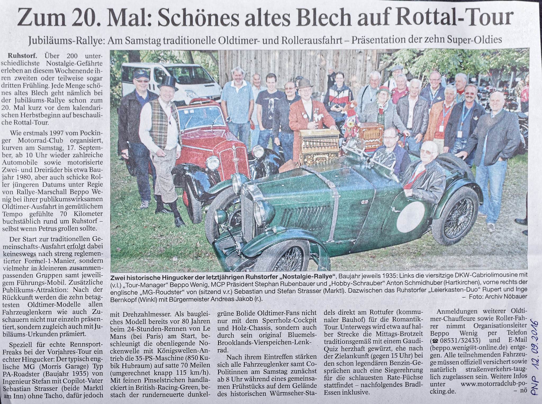 Über die Oldtimerausfahrt am 17.09.2016, Vorbericht vom 12.09.2016
