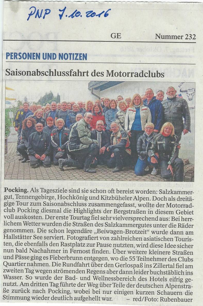 Über die Saisonabschlussfahrt nach Fieberbrunn, Bericht vom 07.10.2016