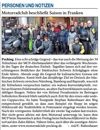 Über die Herbstausfahrt nach Franken, Bericht vom 07.10.2017: