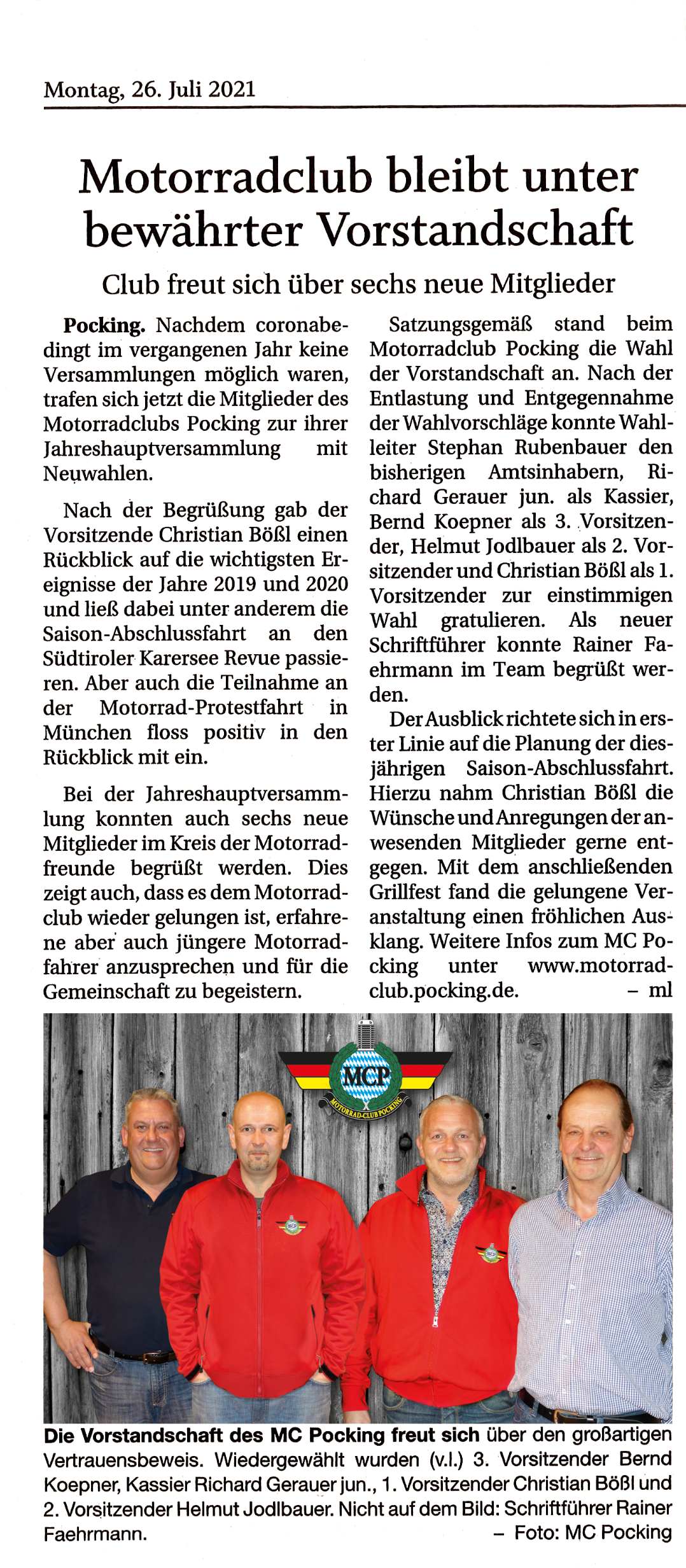 Motorradclub bleibt unter bewährter Vorstandschaft